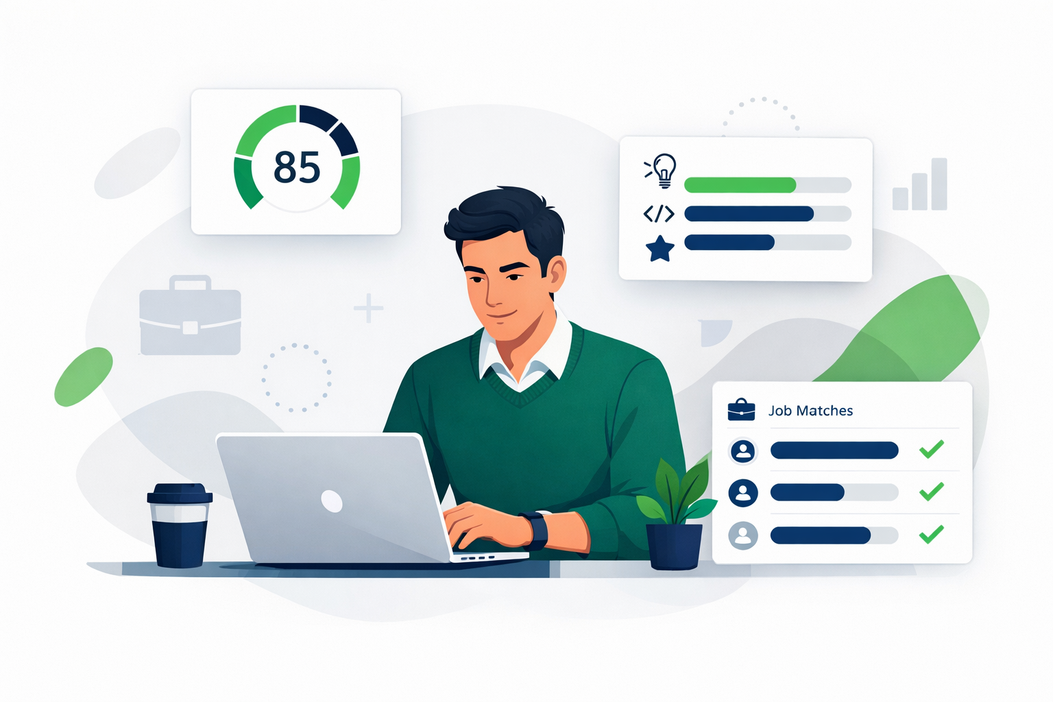 Upload your resume we map skills, surface gaps, and benchmark you against realistic role expectations.